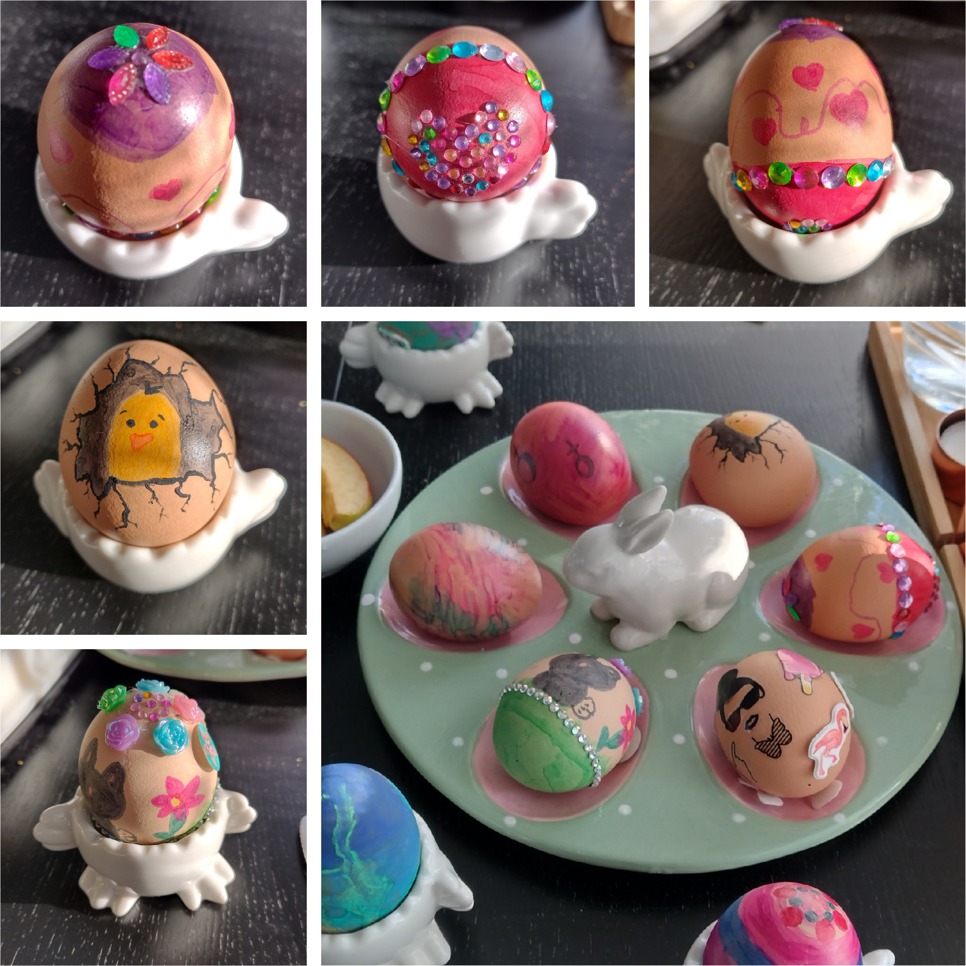 Die kurze Arbeitswoche nach den Osterfeiertagen ging fix rum und es ist Zeit für einen gemütlichen Samstagsplausch. Das Osterwochenende habe ich bei meiner Familie im Ruhrgebiet verbracht. Das Wetter war traumhaft und die Enkelkinder konnten im Garten Ostereier suchen. Zum Frühstück gab es selbstgefärbte und bemalte Ostereier, sogar Ostereier mit Glitzer - richtige kleine Kunstwerke - waren dabei.